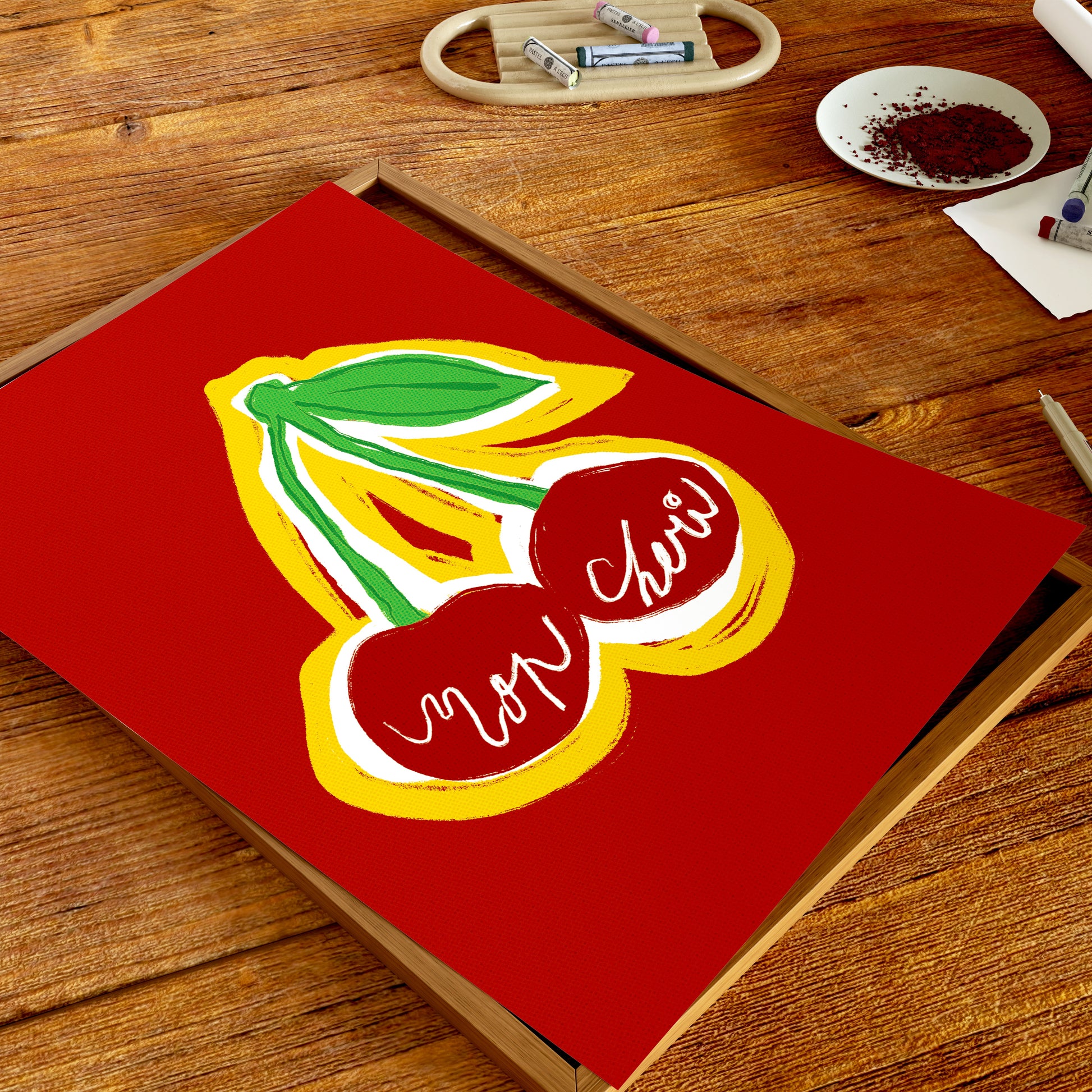 Our framed prints are in Ayous wood frames. The frames are 0.75 inches (1.9 cm) thick, offering a sturdy display for your artwork.