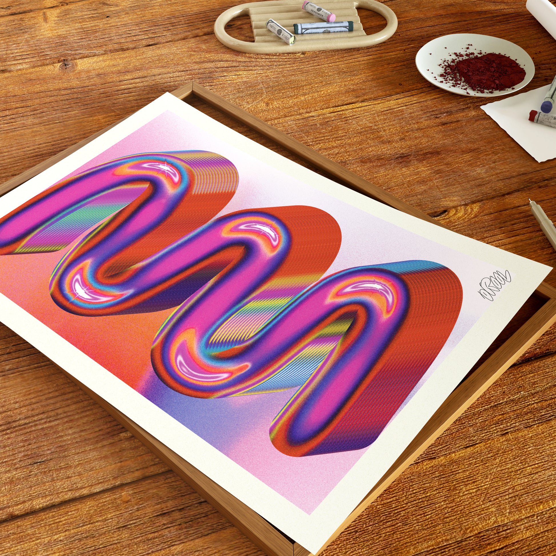 "Obsessed with the framed print I got from Drool Lab! The quality is unreal, the colors are vibrant. The wood frame is sturdy and hanging hardware make it a breeze to hang. Can't wait to get more!"